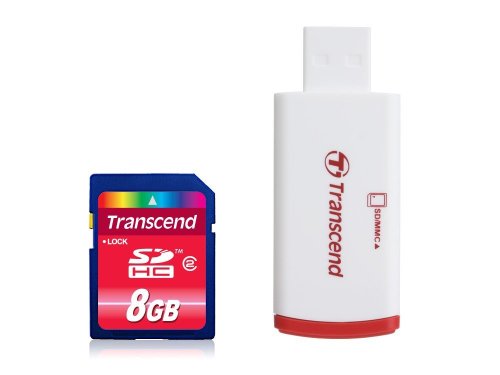 Transcend 8 GB SDHC Class 2 Flash Memory Card with USB Card Reader TS8GSDHC2-P2