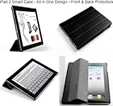 #10: Invision® NEW ULTRA SLIM SMART CASE COVER for Apple iPad 2 - Full Grade BLACK PU Leather with GREY Satin inner cloth. SUPERIOR QUALITY - 4 SEGMENT FRONT COVER - UNIQUE DESIGN FEATURES - AUTO SLEEP/WAKE FUNCTION -
