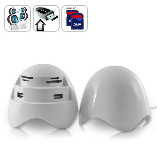 Computer Multi-Memory USB Card Reader + Stereo Speakers for PC, Laptops and Tablets - Ideal Christmas gift